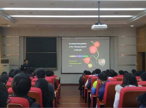接下来与大家分享科研成果的是贺超英,中国科学院植物研究所研究员、2015年国家杰出青年科学基金获得者,2008年于系统与进化植物学国家重点实验室工作;主要开展植物花与果实形态多样性的进化机制、农作物重要基因功能进化及其挖掘利用等方面研究。本次报告贺超英研究员以酸浆属植物(茄科)为主要研究对象揭示了果实形态变异进化发展的遗传基础,特别是关于“中国灯笼”的研究充分体现了中国科学家开展了系统而有影响的研究。
